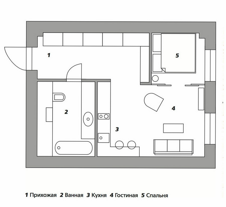 Дизайн 1-комнатной квартиры с выделенной спальной зоной